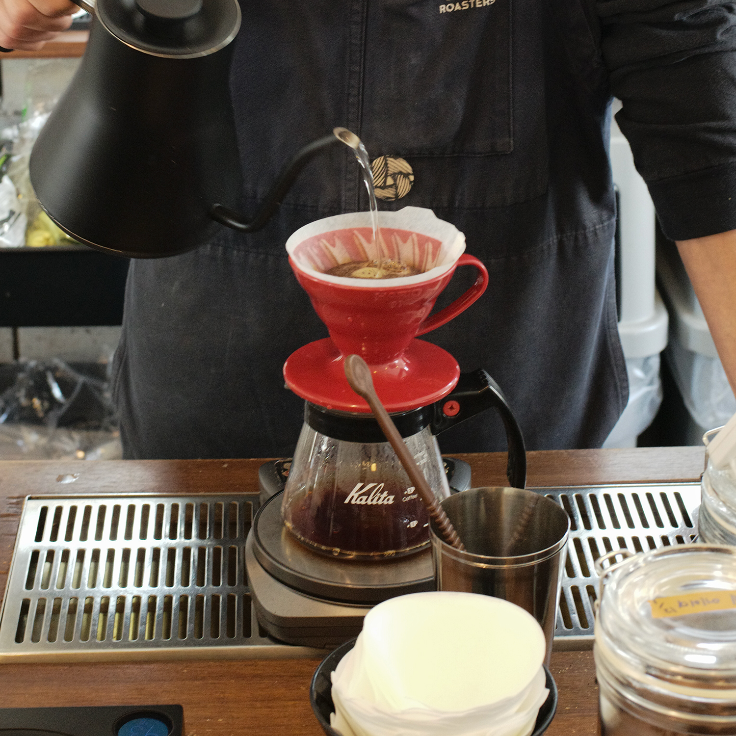 매뉴팩트 커피 사용법 _ 하리오 V60 준비물하리오v60드리퍼, 서버, 하리오필터, 드립포트(주전자), 뜨거운 물 , 저울, 초시계 추출조건원두 ㅣ GGGM입도 ㅣ EK43기준 10.5p (0-16단위)도징양 ㅣ17.5g추출 시간 ㅣ 2:30초추출량 ㅣ 14 - 16g (20g 까지 추출하셔도 됩니다.)추출 온도 ㅣ 93도 추출순서1. 하리오 V60에 필터지를 넣은 후 린싱해줍니다.2. 분쇄 된 원두 17.5g을 넣습니다.3. 타이머 시작 버튼을 누름과 동시에 50ml 물을 부어줍니다.4. 이후 50ml씩 4번 더 붓습니다. (아이스의 경우는 30초 간격으로 뜸 포함 총 200ml을 물을 푸어합니다.5. 추출이 끝나면 예열한 컵에 담아 마십니다. 참고사항1. 불편한 산미가 느껴지는 경우 원두 양을 줄여주시고 산미를 더 표현하고 싶은 경우는 원두 양을 늘려줍니다.2. 뜸 들이기는 커피의 성분을 물에 충분히 녹게 해주고 가스와 공기를 빼주어 드립 시 추출이 원활해지며 커피 고유의 맛과 향을 제대로 표현할 수 있습니다. 3. 뜸 들이는 과정에서 물이 아래로 빨리 빠지는 경우는 원두 굵기가 굵을 수 있으니 굵기를 조절해 줍니다.4.커피가 텁텁하고 쓴맛이 느껴진다면 물 온도를 내려주시고 커피가 가볍고 맹맹하게 느껴진다면 물 온도를 올려줍니다. A. 따뜻한 커피 추출조건원두 ㅣ 매뉴팩트 싱글 라인업, 샌프란시스코 (미디움 정도로 로스팅 된 원두)입도 ㅣ 중간 굵기의 소금정도, ek43 기준 8p도징양 ㅣ18g추출 시간 ㅣ 2:00~2:20추출량 ㅣ 약 200g~210g추출 온도 ㅣ 93도 추출순서1. 뜸은 40g의 물을 사용합니다. 중심부에서 시작하여 천천히 원을 그리면서 나가주세요.2. 1차 푸어는 150g이 될 때까지 부어줍니다. 중간 굵기의 물줄기로 중심부에서 시작하여 편안하게 원을 그리면서 나갔다가 들어와주세요.3. 2차푸어는 220g이 될 때까지 부어줍니다. 중간 굵기의 물줄기로 중심부에서 시작하여 원을 그리면서 나갔다가 들어와주세요.4. 3차 푸어는 250g이 될 때까지 부어줍니다. 가는 굵기의 물줄기로 중심부에서 시작하여 원을 그리면서 나가주세요.5. 드리퍼 제거는 커피베드와 수위가 일치할 때 진행해주세요. 참고사항1. 브루잉 시작 전 서버에 따듯한 물을 담아 예열해주세요. 플라스틱 드리퍼가 아닌 도기, 메탈, 유리소재의 드리퍼의 경우 예열이 필요합니다.2. 황색이 아닌 필터지는 린싱하지 않아도 괜찮습니다. 린싱한 필터지를 사용하실 경우, 원두를 담은 뒤 바로 추출을 시작해주세요.3. 추출시에 1차 푸어에 가장 강한 교반을, 2차 푸어에는 상대적으로 약한 교반을 진행하며, 3차 푸어에서는 잡미를 줄이기 위해 교반을 최대한 억제해 주세요.4. 본인의 입맛에 따라 자유롭게 변형하여 사용해 주세요. B 아이스 커피 추출조건원두 ㅣ 매뉴팩트 싱글 라인업, 샌프란시스코 (미디움 정도로 로스팅 된 원두)입도 ㅣ 중간 굵기의 소금정도, ek43 기준 7p도징양 ㅣ18g추출 시간 ㅣ 1:50~2:10추출량 ㅣ 약 150g추출 온도 ㅣ 93도 추출순서1. 뜸은 40g의 물을 사용합니다. 중심부에서 시작하여 천천히 원을 그리면서 나가주세요.2. 1차 푸어는 120g이 될 때까지 부어줍니다. 중간 굵기의 물줄기로 중심부에서 시작하여 편안하게 원을 그리면서 나갔다가 들어와주세요.3. 2차푸어는 150g이 될 때까지 부어줍니다. 중간 굵기의 물줄기로 중심부에서 시작하여 원을 그리면서 나갔다가 들어와주세요.4. 3차 푸어는 180g이 될 때까지 부어줍니다. 가는 굵기의 물줄기로 중심부에서 시작하여 원을 그리면서 나가주세요.5. 드리퍼 제거는 커피베드와 수위가 일치할 때 진행해주세요. 참고사항1. 플라스틱 드리퍼가 아닌 도기, 메탈, 유리소재의 드리퍼의 경우 예열이 필요합니다.2. 황색이 아닌 필터지는 린싱하지 않아도 괜찮습니다. 린싱한 필터지를 사용하실 경우, 원두를 담은 뒤 바로 추출을 시작해주세요.3. 서버에 얼음을 담고 시작하는 방식과 추출이 종료된 후에 얼음을 넣는 방식은 약간의 맛 차이가 있습니다. 4. 추출시에 1차 푸어에 가장 강한 교반을, 2차 푸어에는 상대적으로 약한 교반을 진행하며, 3차 푸어에서는 잡미를 줄이기 위해 교반을 최대한 억제해 주세요.4. 본인의 입맛에 따라 자유롭게 변형하여 사용해 주세요.