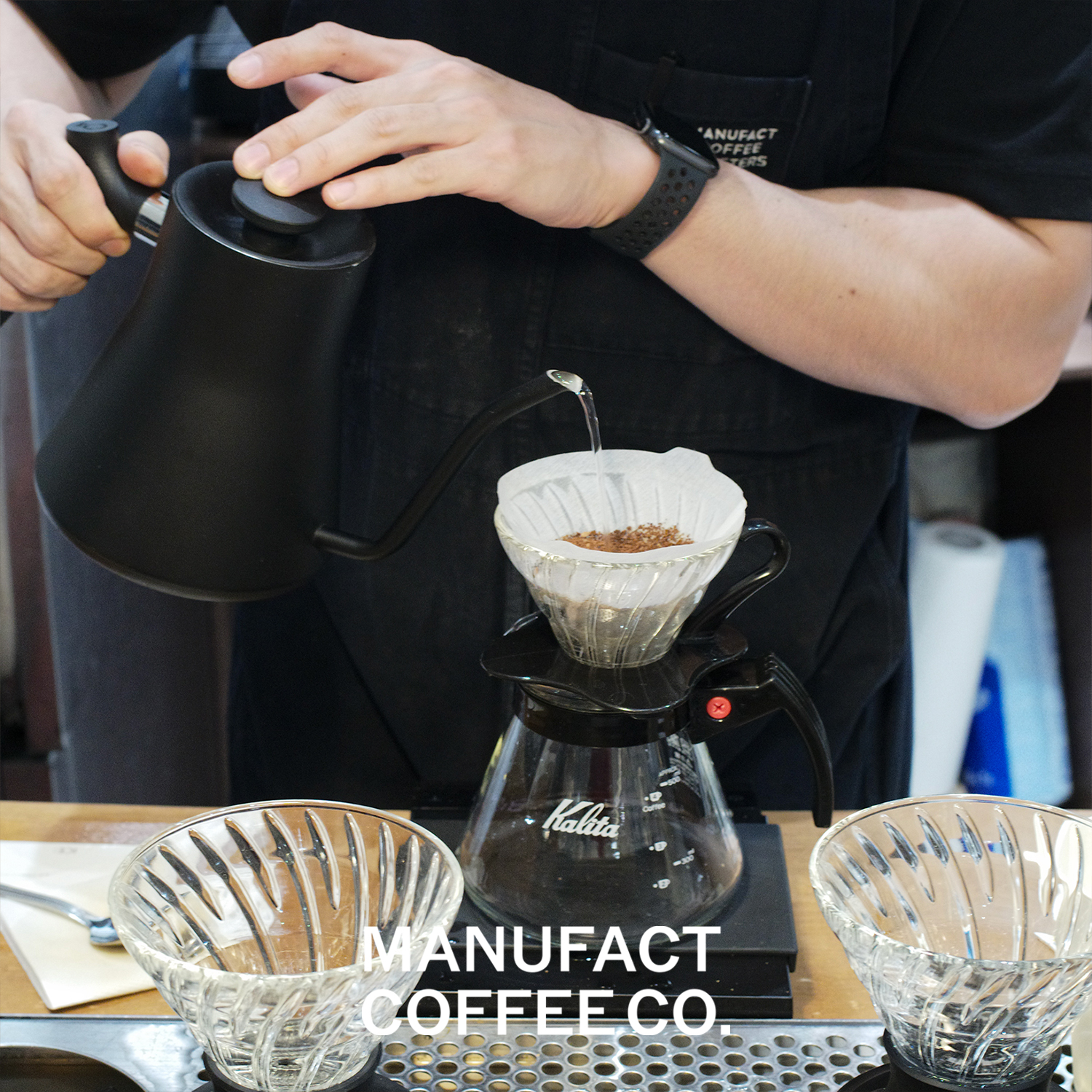 12월 싱글 오리진 추출 레시피 _ 하리오 스위치 준비물하리오v60드리퍼, 서버, 하리오필터, 드립포트(주전자), 뜨거운 물 , 저울, 초시계 A. 따뜻한 커피 추출조건원두 ㅣ 매뉴팩트 12월 싱글 오리진 (미디움 정도로 로스팅 된 원두)에티오피아 야웨 에이미 / 에티오피아 모모라 / 에티오피아 페이셜 압도쉬입도 ㅣ 소금보다 약간 굵은 정도, ek43 기준 10p도징양 ㅣ18g추출 시간 ㅣ2:50~3:00추출량 ㅣ 약 200g~210g추출 온도 ㅣ 93도 추출순서1. 뜸은 40g의 물을 사용합니다. 중심부에서 시작하여 천천히 원을 그리면서 나가주세요.2. 30초가 지나면 스위치를 닫고 저울 눈금이 250g이 될 때까지 부어줍니다. 처음에는 중간 굵기의 물줄기로 원을 그리면서 나가다가 원두를 다 적시고 수위가 올라오면 굵은 물줄기로 나갔다가 들어와주세요.3. 2:15가 되면 스위치를 열어주세요.4. 드리퍼 제거는 커피베드와 수위가 일치할 때 진행해주세요. 참고사항1. 브루잉 시작 전 서버와 스위치에 따듯한 물을 담아 예열해주세요. 침출 방식의 드리퍼를 사용하기에 충분한 예열이 필요합니다.2. 황색이 아닌 필터지는 린싱하지 않아도 괜찮습니다. 린싱한 필터지를 사용하실 경우, 원두를 담은 뒤 바로 추출을 시작해주세요.3. 침출 방식의 드리퍼를 사용하였기에 섬세한 물줄기를 사용할 경우, 성분들의 원활한 추출이 저해될 수 있어요. 강한 유속을 통해 원두가 고루 섞일 수 있도록 푸어링을 진행해주세요.4. 본인의 입맛에 따라 자유롭게 변형하여 사용해 주세요. B 아이스 커피 추출조건원두 ㅣ 매뉴팩트 싱글 라인업, 샌프란시스코 (미디움 정도로 로스팅 된 원두)입도 ㅣ소금보다 약간 굵은 정도, ek43 기준 10p도징양 ㅣ19g추출 시간 ㅣ2:50~3:00 추출량 ㅣ약 120~130g추출 온도 ㅣ 93도 추출순서1. 뜸은 40g의 물을 사용합니다. 중심부에서 시작하여 천천히 원을 그리면서 나가주세요.2. 30초가 지나면 스위치를 닫고 저울 눈금이 150g이 될 때까지 부어줍니다. 처음에는 중간 굵기의 물줄기로 원을 그리면서 나가다가 원두를 다 적시고 수위가 올라오면 굵은 물줄기로 나갔다가 들어와주세요.3. 2:30가 되면 스위치를 열어주세요.4. 드리퍼 제거는 커피베드와 수위가 일치할 때 진행해주세요. 참고사항1. 브루잉 시작 전 서버와 스위치에 따듯한 물을 담아 예열해주세요. 침출 방식의 드리퍼를 사용하기에 충분한 예열이 필요합니다.2. 황색이 아닌 필터지는 린싱하지 않아도 괜찮아요. 린싱한 필터지를 사용하실 경우, 원두를 담은 뒤 바로 추출을 시작해주세요.3. 침출 방식의 드리퍼를 사용하였기에 섬세한 물줄기를 사용할 경우, 성분들의 원활한 추출이 저해될 수 있어요. 강한 유속을 통해 원두가 고루 섞일 수 있도록 푸어링을 진행해주세요.4. 서버에 얼음을 담고 시작하는 방식과 추출이 종료된 후에 얼음을 넣는 방식은 약간의 맛 차이가 있습니다.4. 본인의 입맛에 따라 자유롭게 변형하여 사용해 주세요.