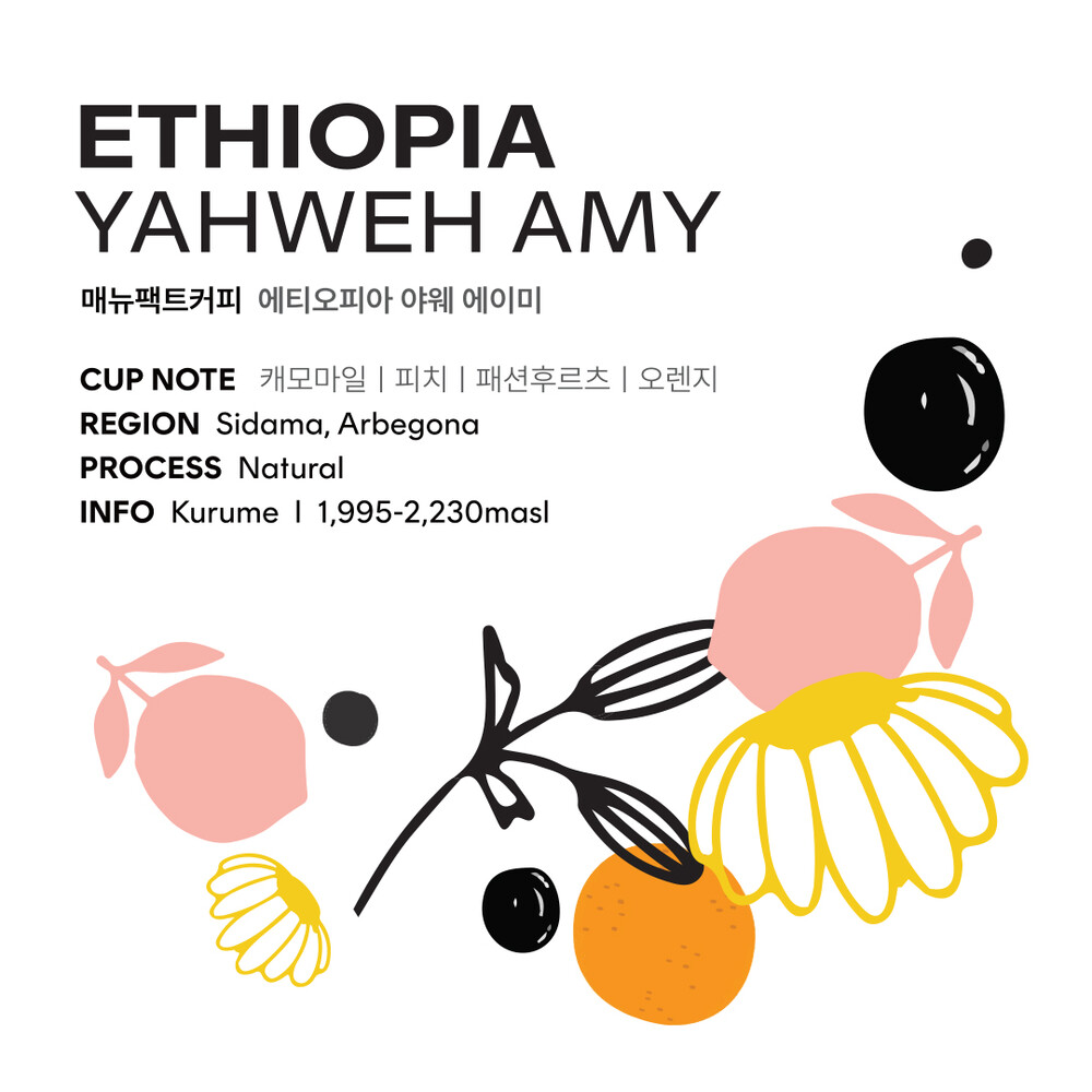 야웨 에이미는 Natural 가공으로 완성되어, 은은한 플로럴 향과 균형 잡힌 산미가 돋보이는 커피입니다.