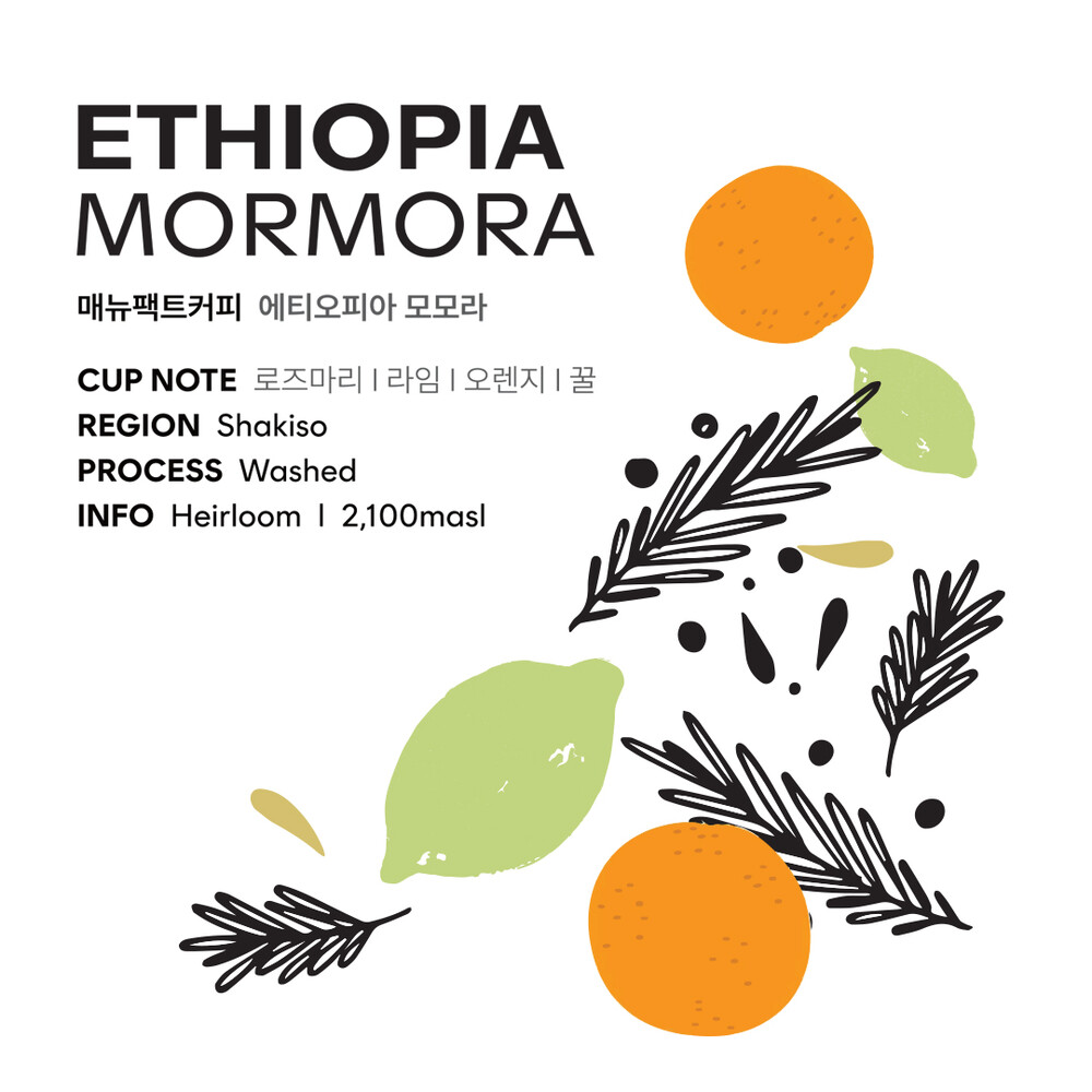 Shakiso의 고지대에서 자란 에티오피아 모모라, Washed 가공으로 섬세하게 처리된 원두에서 허브와 시트러스 향이 선명하게 드러나며, 꿀의 은은한 달콤함이 뒤따르는 균형 잡힌 맛을 자랑합니다.