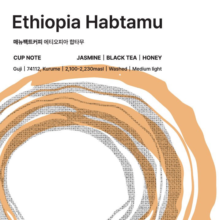 Habtamu Fekadu Aga 농가에서 재배된 에티오피아 합타무는 전통적인 Washed 가공으로 섬세하게 완성된 커피입니다. 자스민의 맑은 플로럴 향과 홍차처럼 부드러운 바디감이 이어지며 꿀의 은은한 달콤함이 깔끔한 여운으로 남습니다.