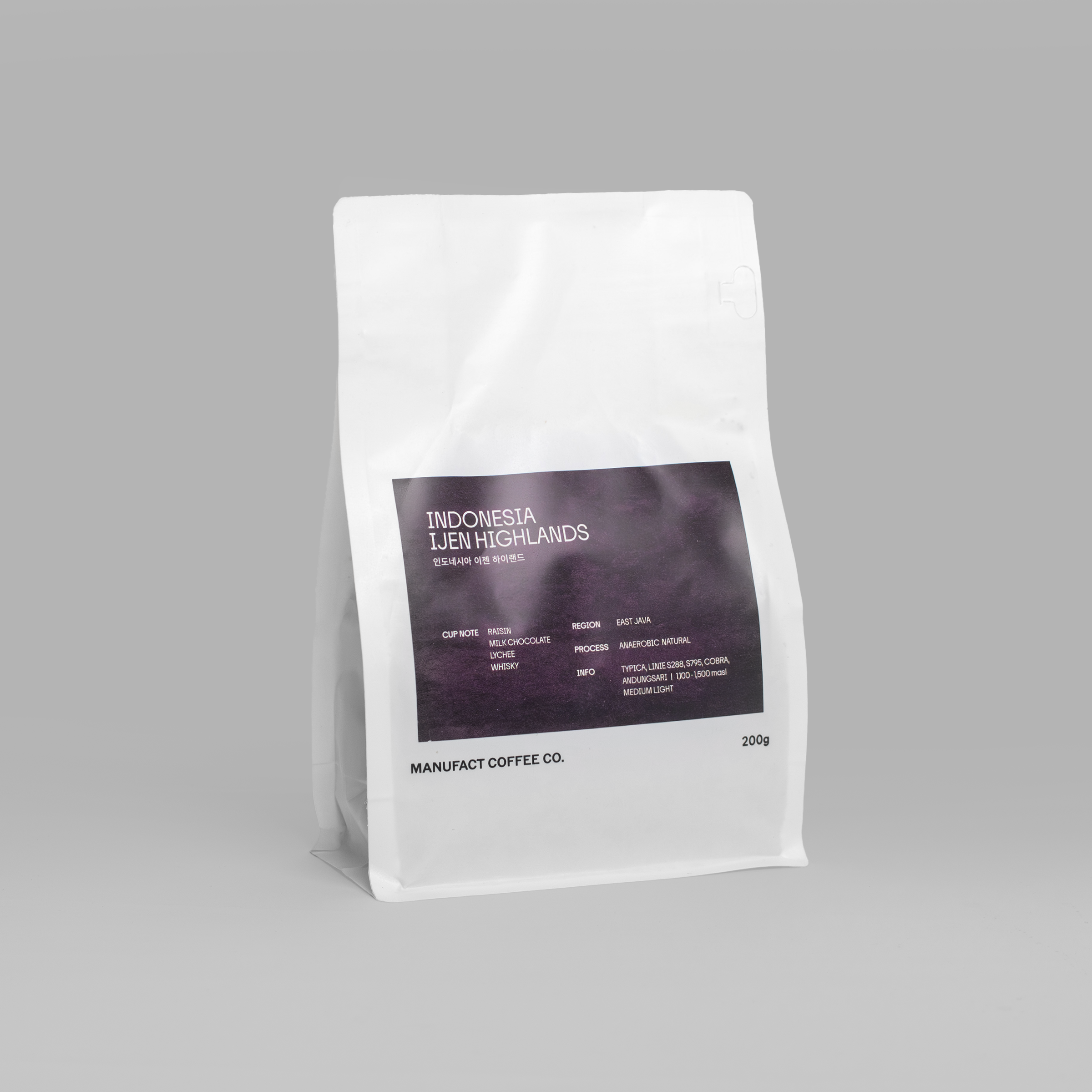 인도네시아 이젠 하이랜드는 Anaerobic Natural 가공방식으로 풍부한 향의 밀도가 돋보이는 커피입니다. 건포도와 리치의 농밀한 과일 향이 깊게 펼쳐지고, 밀크초콜릿의 부드러운 단맛 위로 위스키가 연상되는 여운이 이어집니다.