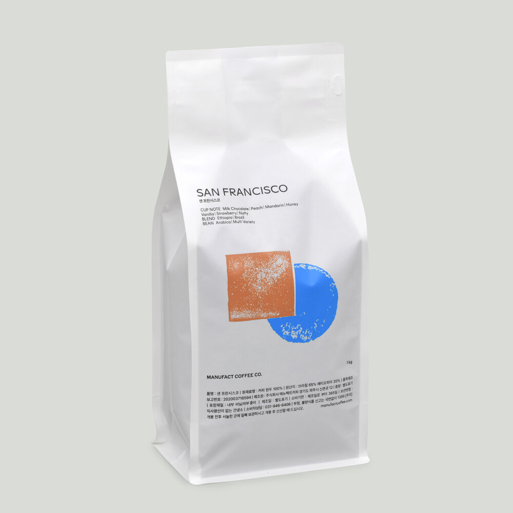 미국 샌프란시스코의 좋은 햇살, 바다내음, 바쁘게 돌아가는 일상 속의 여유, 다양한 인종 속의 자연스러운 조화의 모습을 담고자 한 커피입니다.