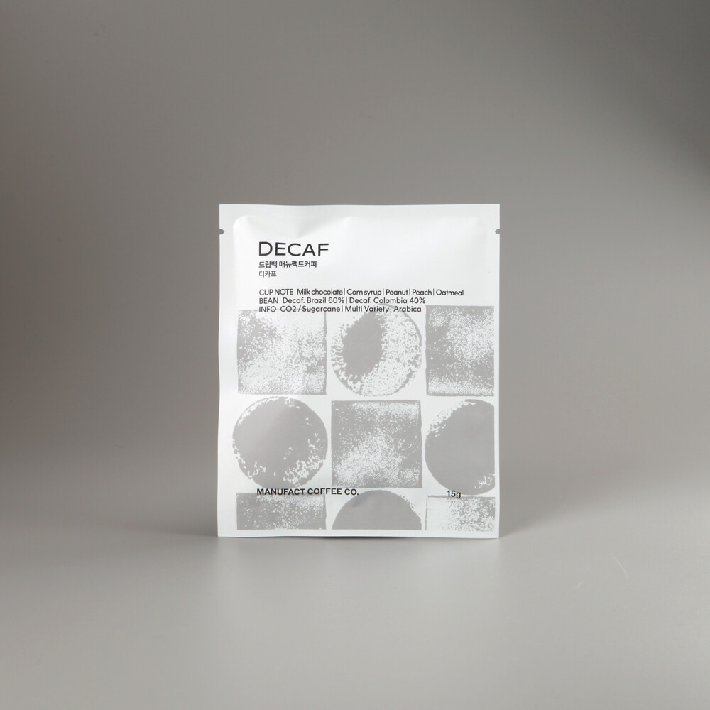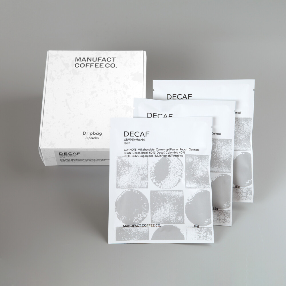 매뉴팩트커피의 디카프 원두를 드립백으로 쉽고 간편하게 즐기실 수 있습니다.