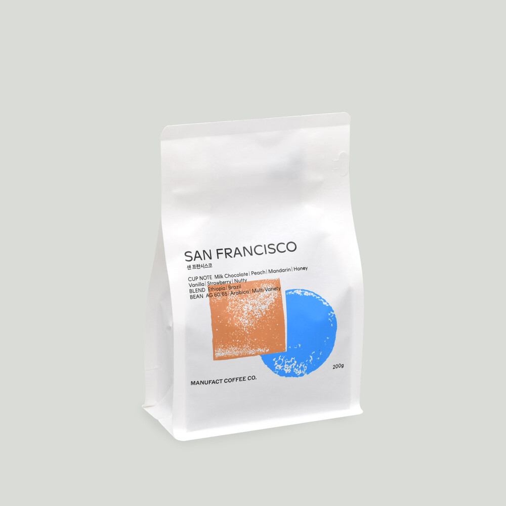 미국 샌프란시스코의 좋은 햇살, 바다내음, 바쁘게 돌아가는 일상 속의 여유, 다양한 인종 속의 자연스러운 조화의 모습을 담고자 한 커피입니다. 에티오피아의 다양성과 화려함, 브라질의 차분함과 부드러움을 담아 블렌딩을 만들었습니다. 핵과류의 산미와 달콤한 향, 부드러운 질감 그리고 풍부한 단맛을 가진 샌프란시스코는 아침을 시작하는 커피로 훌륭합니다.