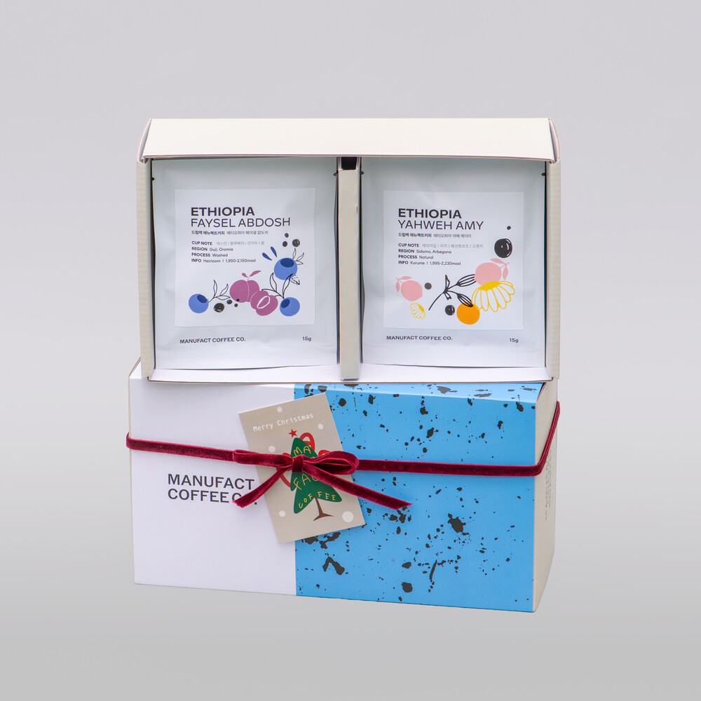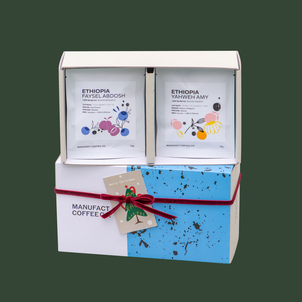 12월 싱글 오리진 에티오피아 3종과, 매뉴팩트커피 시그니처 블렌드 3종 중 취향에 맞는 옵션을 골라 특별한 연말을 선물해 보세요.