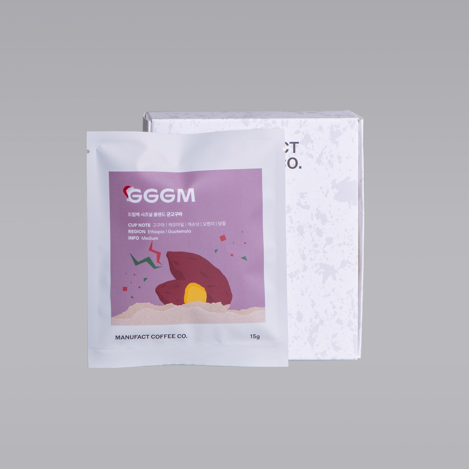 고구마와 귤이 자연스레 생각나는 겨울, 따뜻하게 구워진 군고구마의 포근함을 떠올리며 탄생한 매뉴팩트의 겨울 시즌 블렌드 GGGM입니다. 에티오피아와 과테말라의 커피를 정교하게 블렌딩해, 따뜻하고 부드러운 겨울 감성을 완성했습니다.