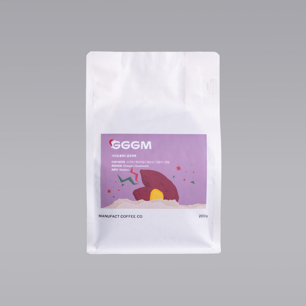 고구마와 귤이 자연스레 생각나는 겨울, 따뜻하게 구워진 군고구마의 포근함을 떠올리며 탄생한 매뉴팩트의 겨울 시즌 블렌드 GGGM입니다. 에티오피아와 과테말라의 커피를 정교하게 블렌딩해, 따뜻하고 부드러운 겨울 감성을 완성했습니다.