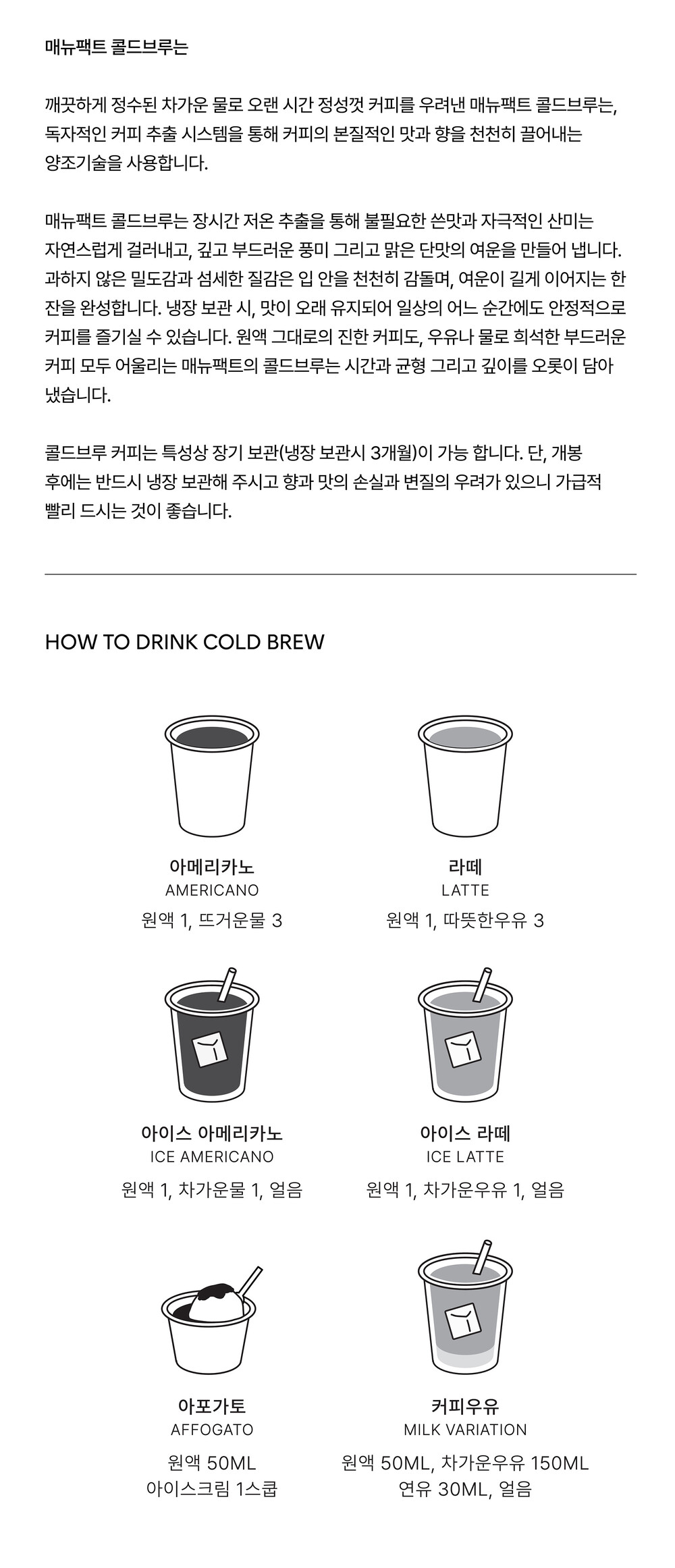 추출량 : 250g (농도에 따라 추출량을 증감해도 됩니다)